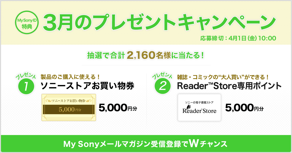 My Sony Id特典 3月のプレゼントキャンペーン キャンペーン My Sony ソニー